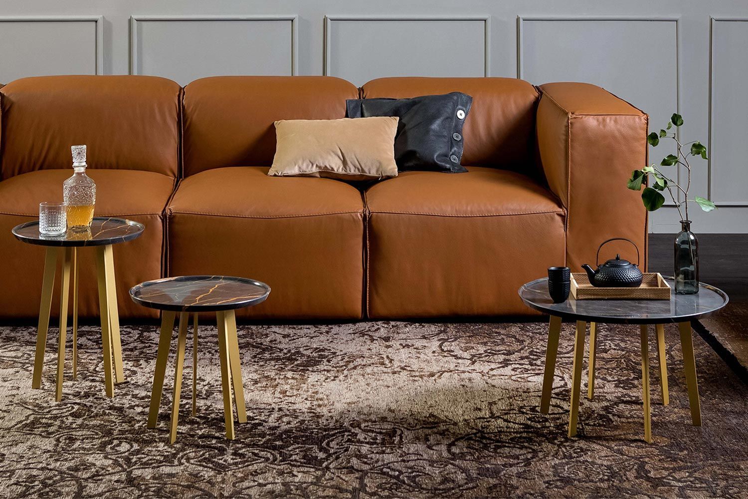 Stolik kawowy Shine to oszałamiająca opcja dekoracyjna do współczesnego salonu. Osiem lśniących metalowych nóg przyciąga wzrok. Dzięki dodatkowym nóżkom stół jest bardzo stabilny, a także estetyczny. Na zachęcającym okrągłym blacie jest dużo miejsca, aby zrobić miejsce na niezbędne przedmioty. Wyprodukowany we Włoszech w celu zapewnienia jakości, stolik kawowy Shine ma dopasowany stolik końcowy, który tworzy spójny wygląd. Blat ma różne marmurowe wykończenia, a nogi wykończone są w matowym złotym kolorze.