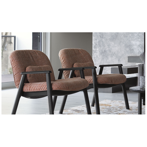 Miękka tapicerka, która nadaje estetyczny przytulny wygląd, zawiera małą poduszkę podparcia lędźwi w dopasowanym pokrowcu i gwarantuje fotelowi Baltimora najwyższy komfort siedzenia.