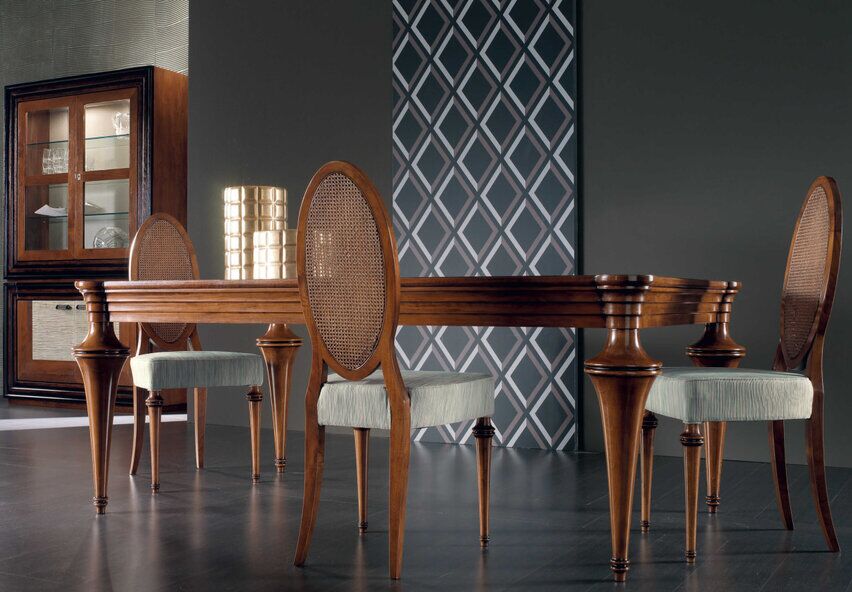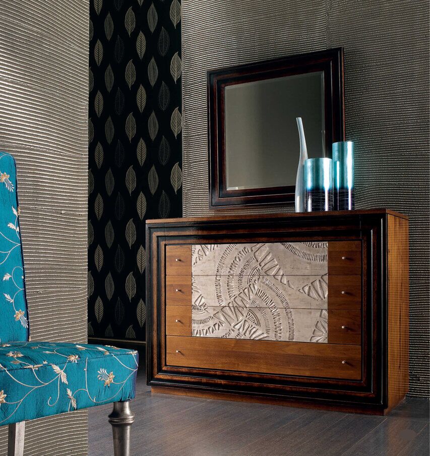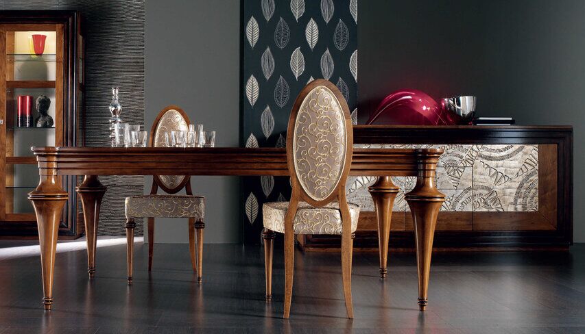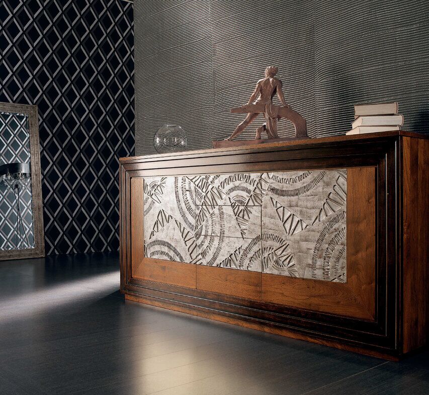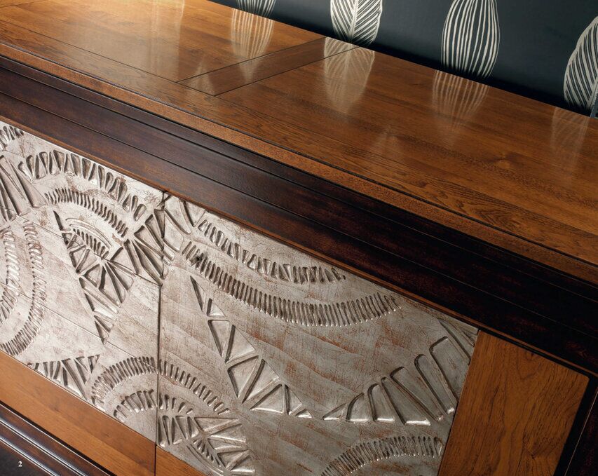 Kolekcja Etoile jest inspirowana meblami neoklasycystycznymi i biedermeierowskimi, z efektownym, ale stonowanym wystrojem i inspirowaną architekturą z tamtego okresu. Każdy mebel oferuje wiele funkcjonalnych rozwiązań, doskonale współgrających ze złotymi i srebrnymi zdobieniami, które są nakładane ręcznie przy użyciu wiekowych włoskich technik. Silny kontrast kolorów między różnymi częściami każdego elementu i wiele dostępnych typów. Szlachetne drewno i wyeksponowane słoje silnie kontrastują z dekorowanymi sekcjami.