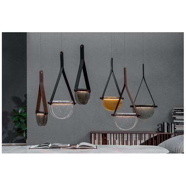 Lampa wisząca Dali to nie tylko doskonały sposób na oświetlenie pomieszczenia, ale także wspaniała opcja dekoracyjna. Zestawienie półkolistego szklanego dyfuzora ze skórzanym paskiem sprawia, że światło jest pięknym ogniskiem. Idealna do przedpokoju lub nad stołem, Dali oferuje nastrojowe oświetlenie, które odpowiednio tworzy nastrój. Umieść lampę wiszącą samodzielnie lub w oszałamiających grupach, aby uzyskać wszechstronne efekty wizualne. To część luksusowej kolekcji Dali, która wygląda niesamowicie w kompozycji. Dostępne są różne szklane wykończenia, pasek jest wyposażony w różne opcje skórzane. Wyjątkowa i przyciągająca wzrok lampa stołowa Dali marki Tonin Casa to niesamowita opcja dekoracyjna dla nowoczesnego domu. Jedyna w swoim rodzaju konstrukcja dodaje współczesnego uroku i zawiera dwustronny półkolisty dyfuzor. Różne kształty, kolory i materiały wyróżniają się na tle siebie, aby natychmiast uwydatnić styl pomieszczenia. Dzięki miękkiemu, skupionemu oświetleniu lampa idealnie nadaje się na biurko lub stolik nocny.